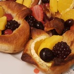 В другом варианте я сделала корзиночки с апельсиновыми дольками и несколькими ягодами ежевики.