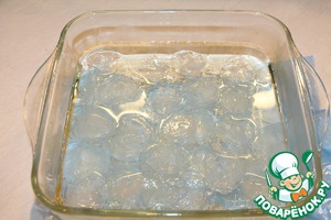 Сверху на сироп разложить кубики льда - это необходимо для равномерного остывания сиропа.