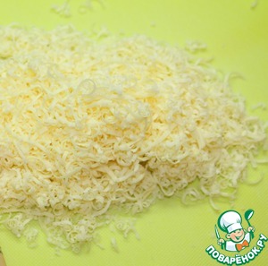 На мелкой терке потереть сыр, мелко порубить вареный яйца.