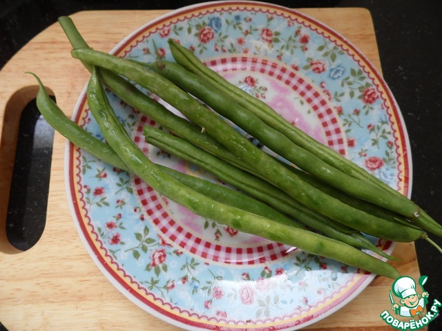 • Начинаем с приготовления стручковой фасоли, помыть, нарезать