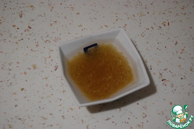 25 г желатина положить в маленькую мисочку и залить холодной водой, чуть выше уровня самого желатина.
