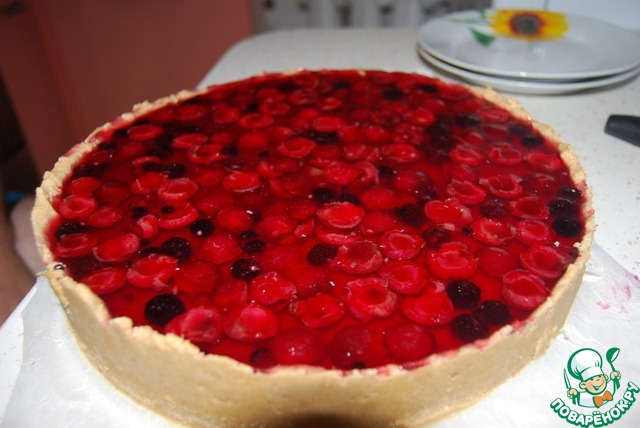 Заливаем в нашу "корзинку". К этому времени она уже хорошо застыла. Отправляем в холодильник.