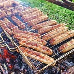 Идеально жарить колбаски на открытом огне, на углях, на гриле.