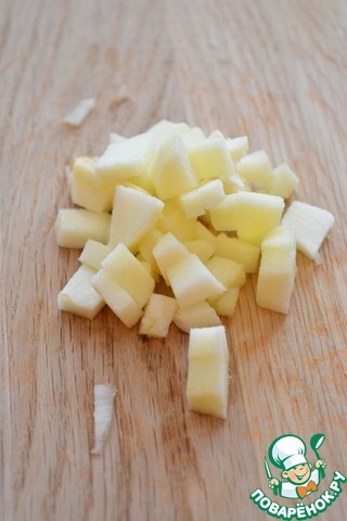 Грушу нарежьте кубиками. Я очистила ее от шкурки, т. к. шкурка была грубая