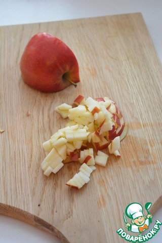 Нарежьте кубиками яблоко, сбрызните его лимонным соком
