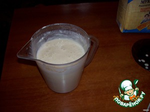 Влить кефир, добавить соду, смешать. Всыпать муку, хорошо взбить.
