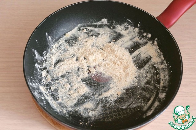 Муку (1 ст. ложка) обжарить на сухой сковороде до золотистого цвета.