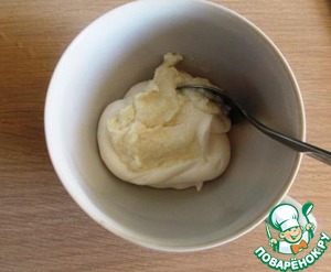 Смешиваем в чашке яблочное пюре, хрен и майонез.