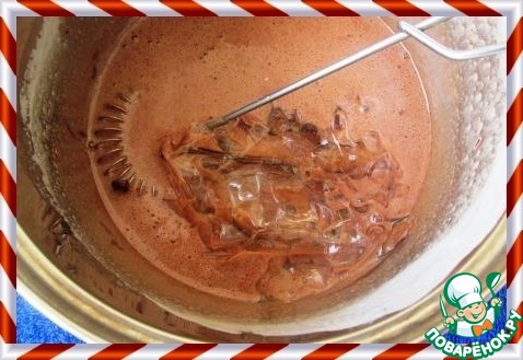 Отжимаем рукой желатин и добавляем в ковшик. Правильно, опять всё вымешиваем до однородности и растворения желатина.