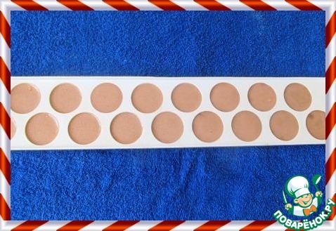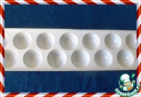 Самое трудное было найти полукруглые формочки, я приспособила ячейки для яиц из старого холодильника. Хорошо, не выбросила в своё время... -