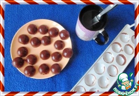 Две столовых ложки шоколадной смеси откладываем в чашку. Аккуратно заполняем формочки шоколадной смесью и оставляем остывать, потом убираем в холод.