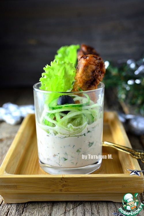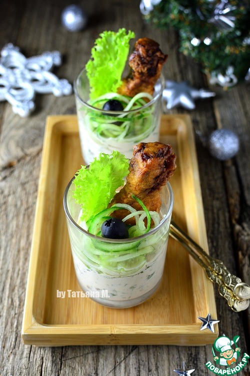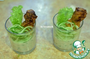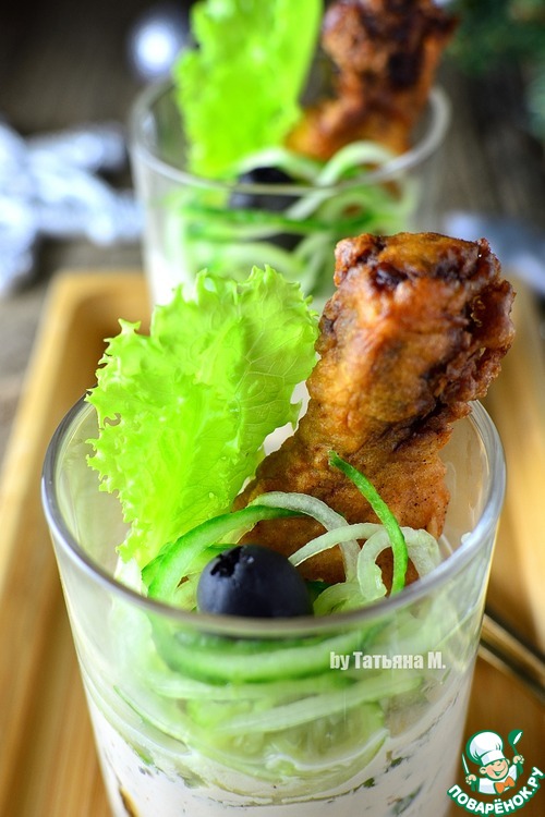 Кто не любит ароматные куриные голени, жаренные во фритюре? Из них можно приготовить очень вкусную холодную закуску для праздничного фуршета, если их подать порционно в верринах, да еще и с любимым соусом!