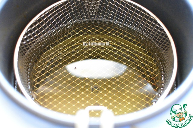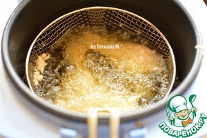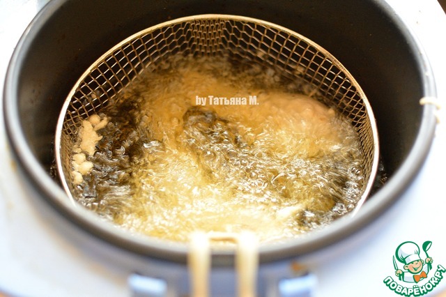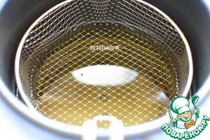 Разогреть масло до 190 градусов (я использую фритюрницу, но можно использовать пригодную для этого посуду из нержавейки с толстым дном);