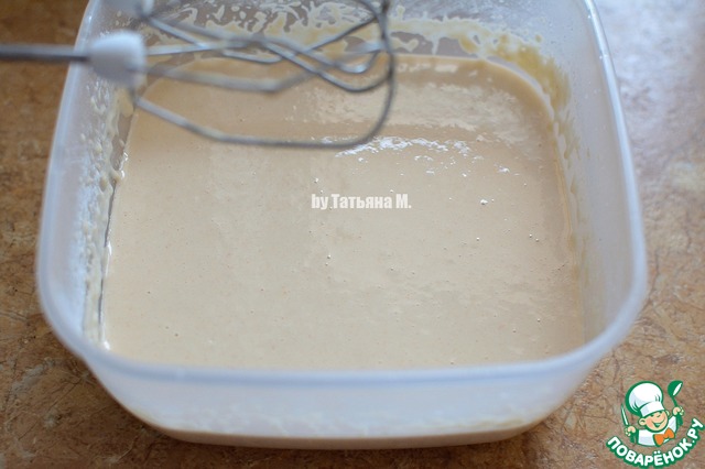 Во фритюр при помешивании постепенно добавлять муку до получения консистенции как на оладушки (муку я указала приблизительное количество, так как я так же подсыпала постепенно и точный вес не знаю);