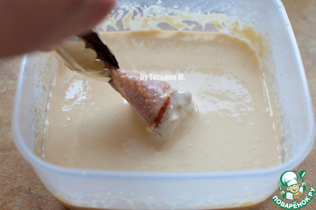 Кухонными щипчиками обмакивать каждую голень полностью во фритюр и сразу отправлять голени в кипящее масло;
