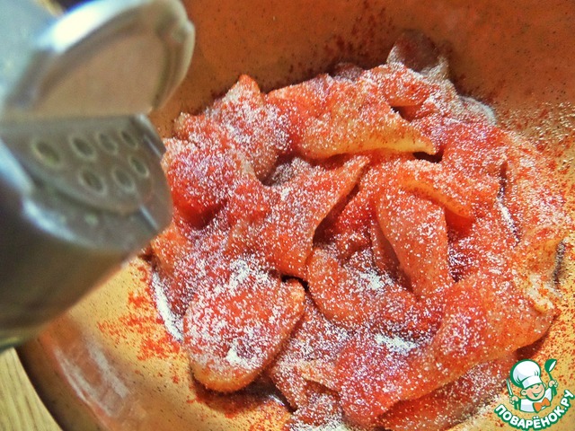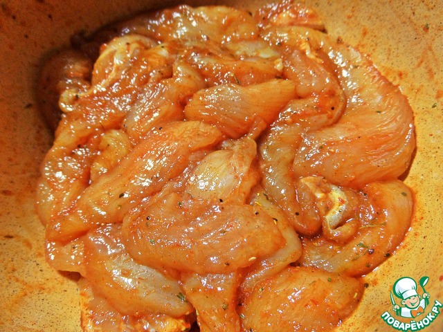 Перемешать хорошенько в смеси и оставить мариноваться на несколько часов или на ночь в холодильнике.