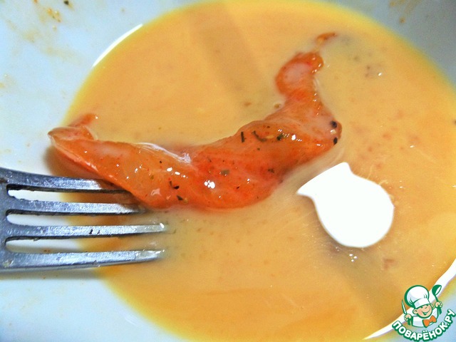 Взболтать яйцо с молоком или водой и окунуть в него по-очереди каждую полоску.
