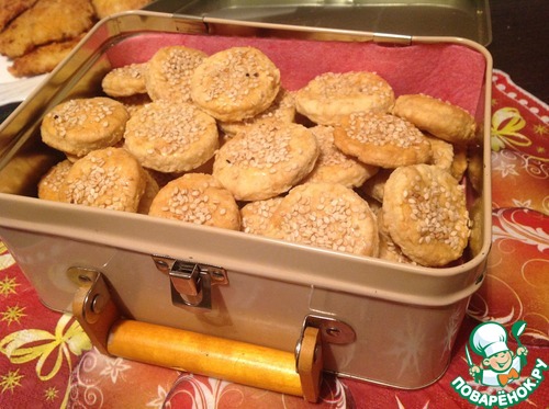 Смазать крекеры взбитым яйцом и посыпать кунжутом.