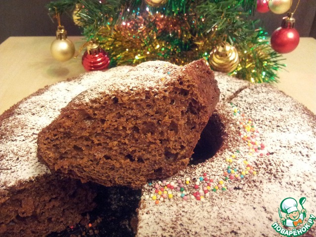 Вкусный, интересный и ароматный пирог. Совершенно не избитый вкус. Удачное сочетание специй и горького шоколада. Чуть влажноватый, яркий бисквит, который вы с легкостью можете превратить в торт, разрезав его и промазав джемом. Этакий вкуснющий, большой пряник для всей семьи. Ниночка (Barska ) лови пирожок с наилучшими новогодними пожеланиями. Угощайтесь!!'