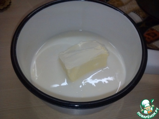 Затем еще раз слегка подогреть молоко с маслом, довести почти до кипения. Добавлять маленькими порциями в тесто, постоянно аккуратно помешивая.