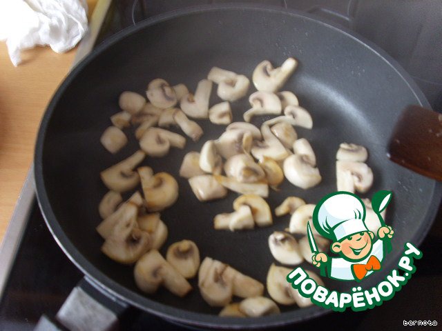 В сковороде разогреваем масло и обжариваем шампиньоны.