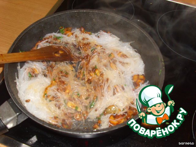 Кипятим в кастрюле воду. Когда вода вскипит погружаем в неё лапшу и отставляем в сторону на 15 мин.