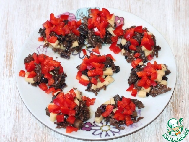 5. Нарезаем небольшими кубиками сыр, затем сладкий перец и добавляем в начинку.
