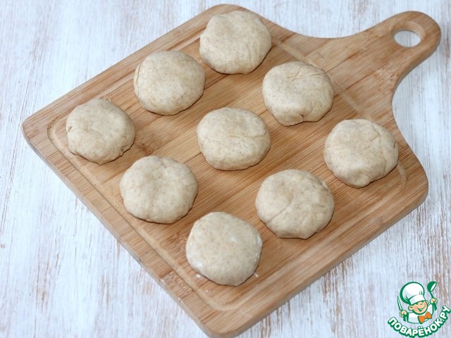 8. Каждый шар раскатываем в круглую лепешку, 9~10 см.