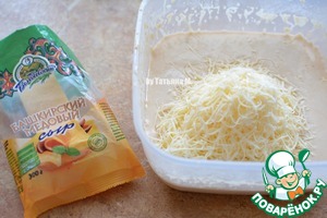 Замесить тесто консистенции оладушков (муки дала приблизительное количество, так как добавляла ее постепенно), добавить к тесту тертый сыр, перемешать;