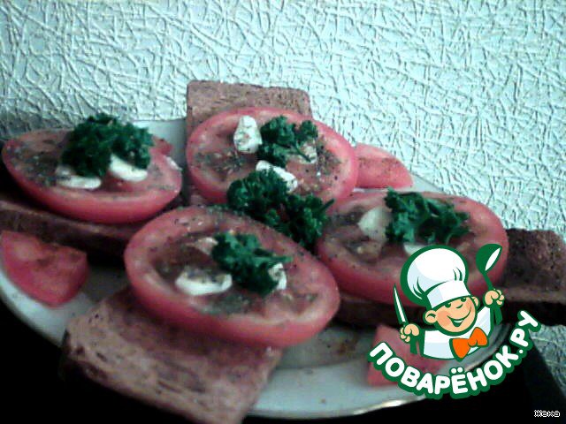 Помидор режем кольцами и посолив и поперчив по вкусу (хлеб не солить) укладываем на хлеб. Сбрызгиваем лимончиком и готово.