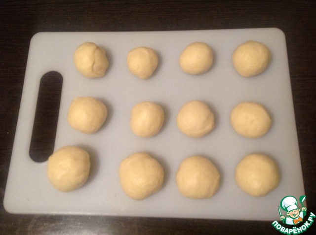 • Подошедшее тесто раскатать в "колбаску" и разрезать на 12 частей.