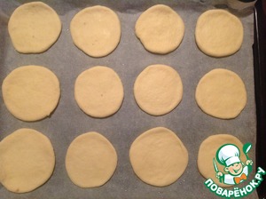 • Раскатать все колобки в лепешки и поместить на смазанный маслом противень.