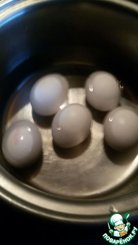 Отварить яйца в крутую в подсоленной воде, чтобы они потом лучше чистились.