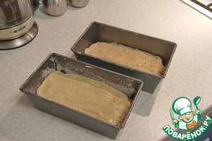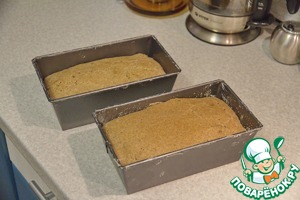 • Поднявшееся тесто разделить на две части и выложить в формы.