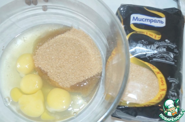 Яйца разбить в чашу, добавить весь сахар