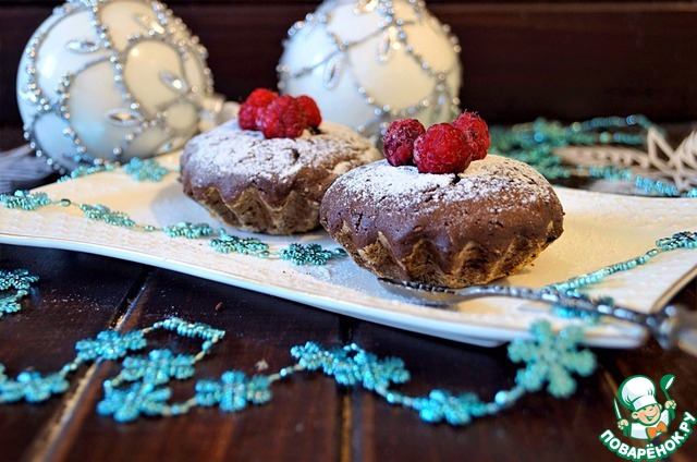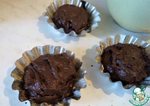 Рецепт «Супер шоколадные кексы с малиновой начинкой»:
