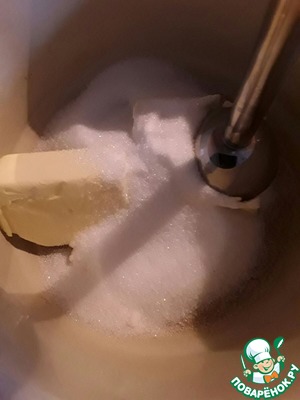 Берём размягчённое сливочное масло или маргарин и хорошо растираем с сахарным песком. Я это делала блендером.