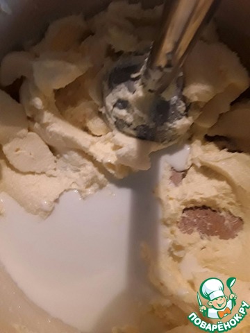 Добавляем яйцо и продолжаем растирать до кремообразного состояния, после чего добавляем молоко и все тщательно перемешиваем.