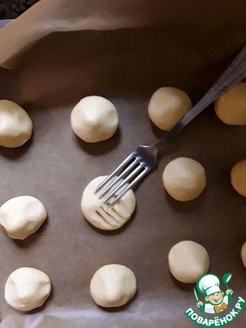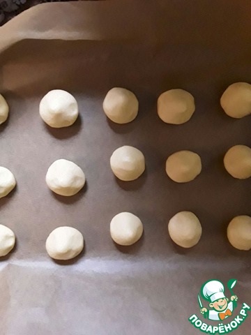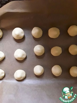 Теперь набираем тесто чайной ложкой, формируем из него шарики и выкладываем на противень, застеленный пекарной бумагой.