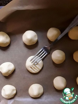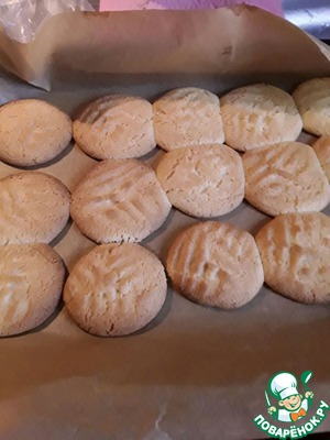 Вот такое печенье и у нас получилось. На противень помещается до 20 штук, в духовке они сильно увеличиваются в объёме, так что нужно их укладывать на расстоянии друг от друга.