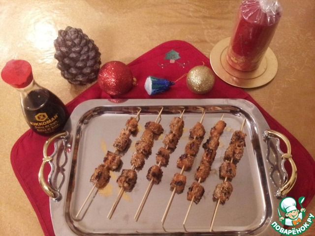 3. Нанизать кусочки семги на шпажки и обмакнуть в семена кунжута.