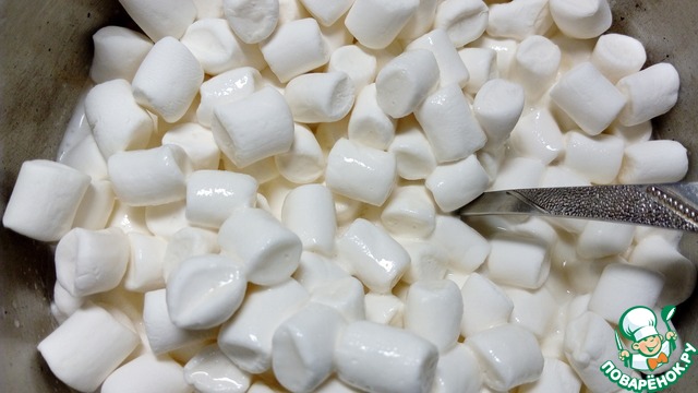 Помешивая, добиваемся полного растворения зефирок. Вы увидите, что масса начнет "пышнеть" и увеличиваться в объеме.