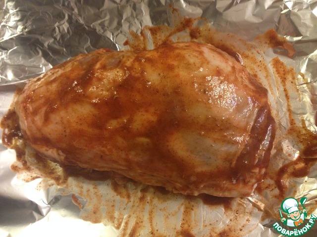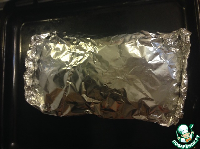 Заворачиваем фольгу конвертиком и плотно запечатываем края. Я замариновала мясо в 10:00-10:30 и оставила до 16:00.