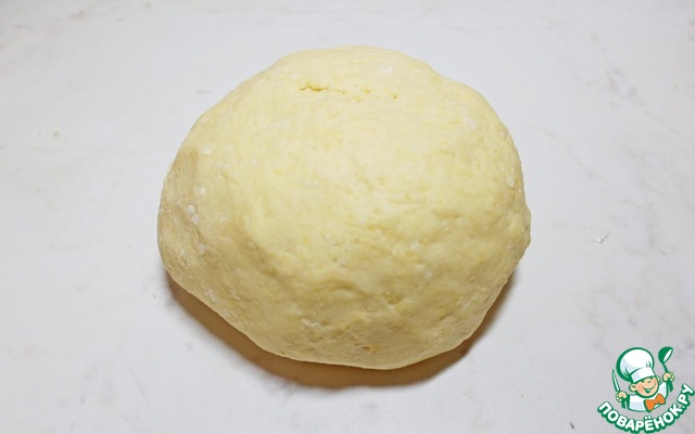 Замесить эластичное тесто (если необходимо то добавьте муку или же наоборот ледяную воду). Завернуть тест в пленку и убрать в холодильник на мин 30.