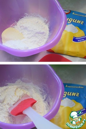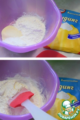 Если у Вас нет готового сухого пудинга, то можно приготовить смесь самим: смешать 30 г крахмала (любого) с 1 пакетиком ванильного сахара или 1 г ванилина, 1 ст. л. сахара и 1/2 ч. л. разрыхлителя.