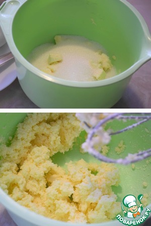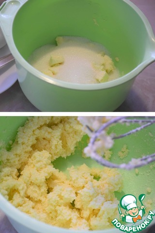 В мягкое сливочное масло добавить сахар и взбить (взбиваем 5-7 минут).