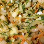 Вы знаете - я когда впервые увидела этот рецепт - ничего интересного не ожидала. Как-то вечером перелистывала свои кулинарные записки и подумала - ну что меня останавливает - буду пробовать... Приготовила, попробовала - и даже не поняла, как съела всю пробную партию. Нарубила еще порцию и "подсунула" тарелочку мужу к картошке... Через 5 минут слышу: "Марин, а салатика больше нет?" А в следующий раз к нам друзья пришли - мужчины под горячительные напитки быстро все уничтожили... Давайте пробовать!