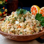 - Майонез (Если вы отъявленный нелюбитель майонезной заправки - попробуйте смешать душистое подсолнечное масло с цедрой лимона и 1 ч.л. меда....) — 100 г