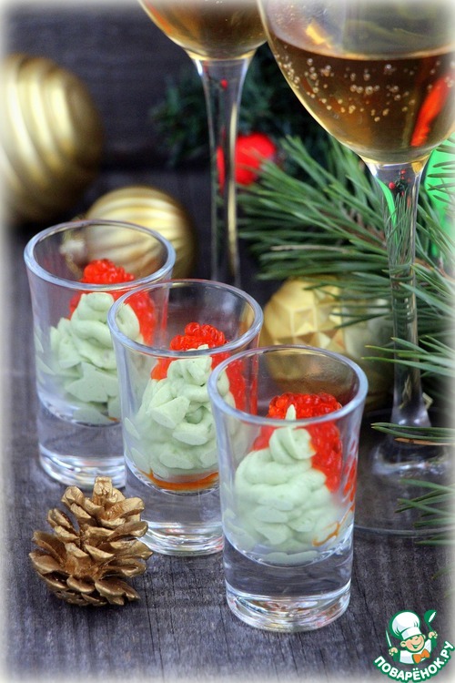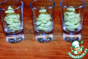 Выложить крем из авокадо в порционные рюмки.