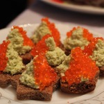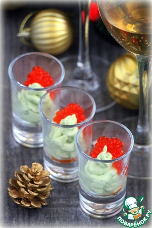 Одна из самых легких, быстрых и вкусных закусок получается из крема из авокадо с творожным сыром, лимонным соком и соевым соусом. Выложив его в порционные рюмки и украсив сверху красной икрой, получаем эффектную закуску.